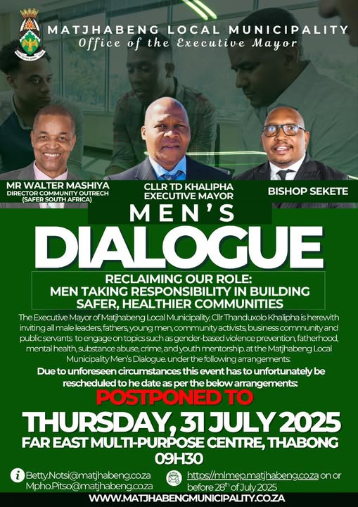 The Executive Mayor of Matjhabeng Local Municipality, Cllr Thanduxolo Khalipha, invites all male leaders, fathers, young
