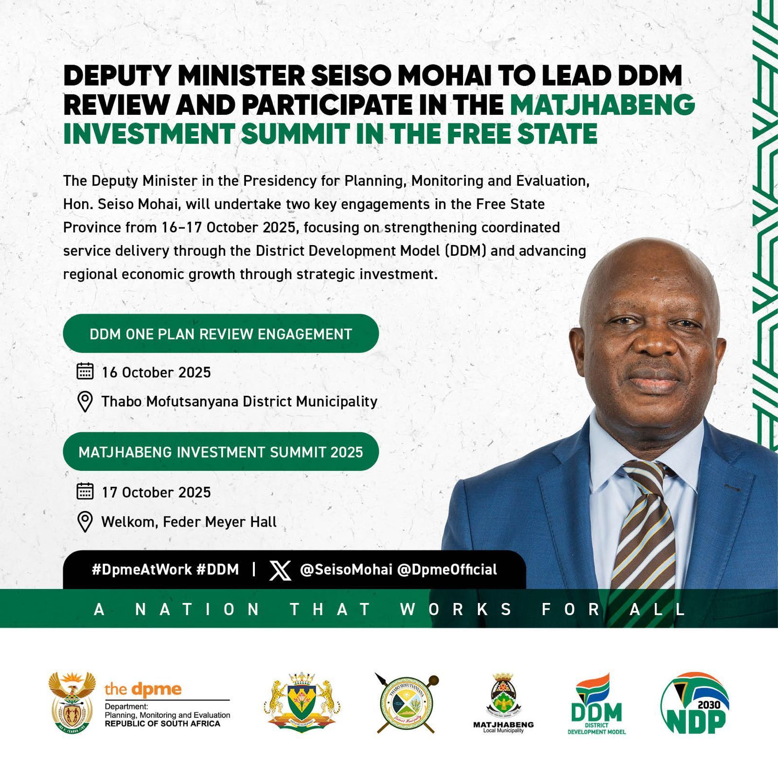 DEPUTY MINISTER SEISO MOHAI TO LEAD DDM REVIEW AND PARTICIPATE IN THE MATJHABENG