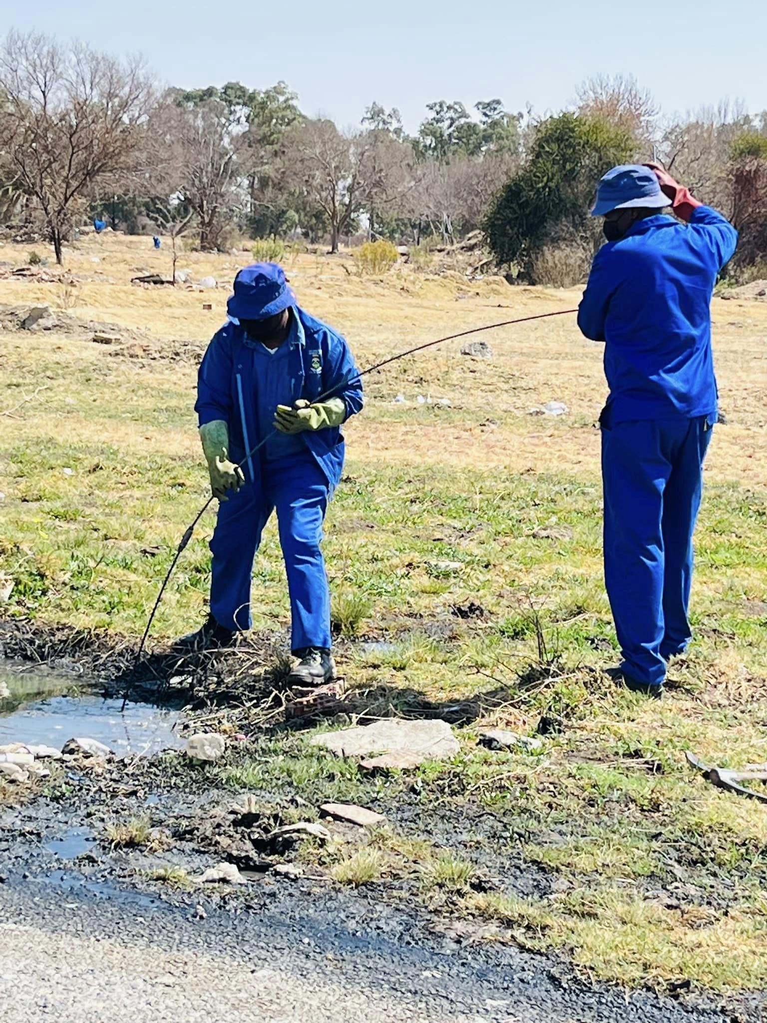 The Matjhabeng Local Municipality's Sewer Team in Odendaalsrus is currently working to clear sewer blockages in Block A, ensuring the proper functioning of the sewage system in the area.
