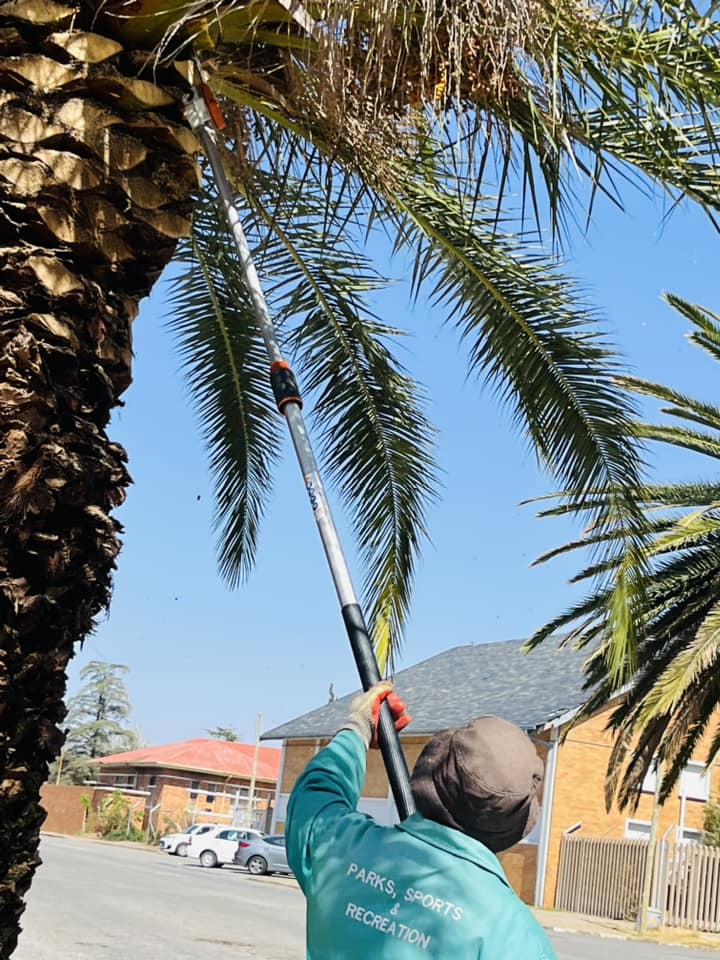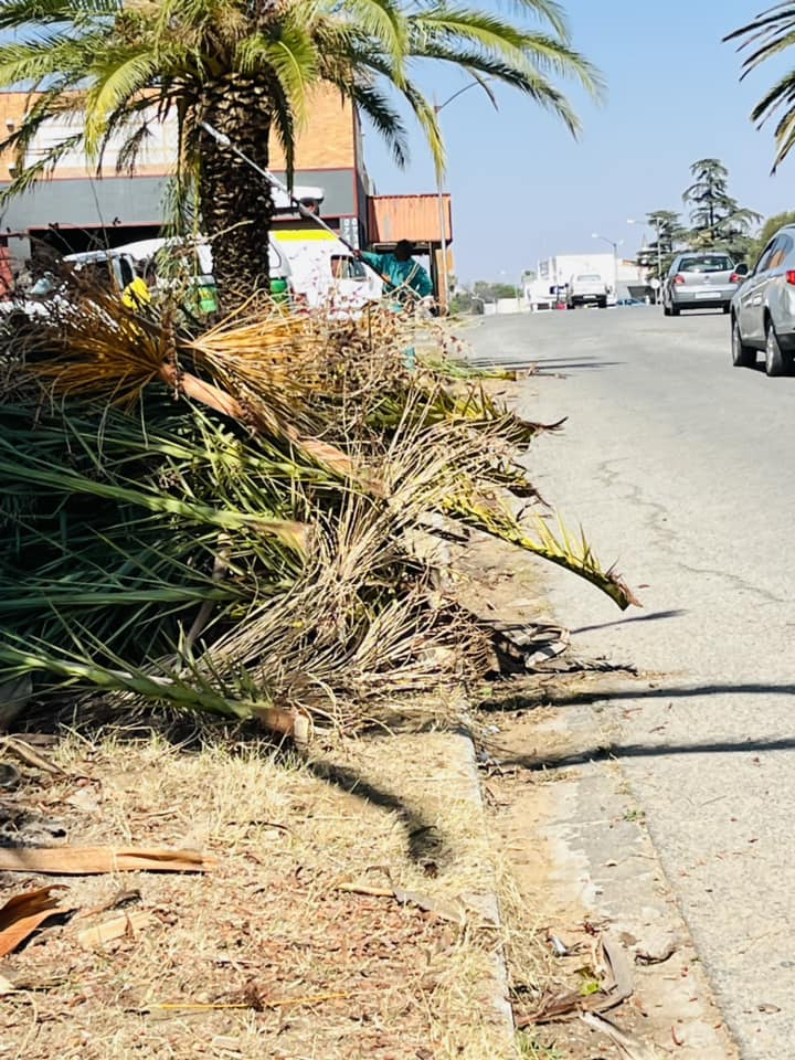 The Matjhabeng Local Municipality's Parks and Recreation team in Odendaalsrus is actively working in the Central Business District (CBD), focusing on tree trimming and street cleaning.