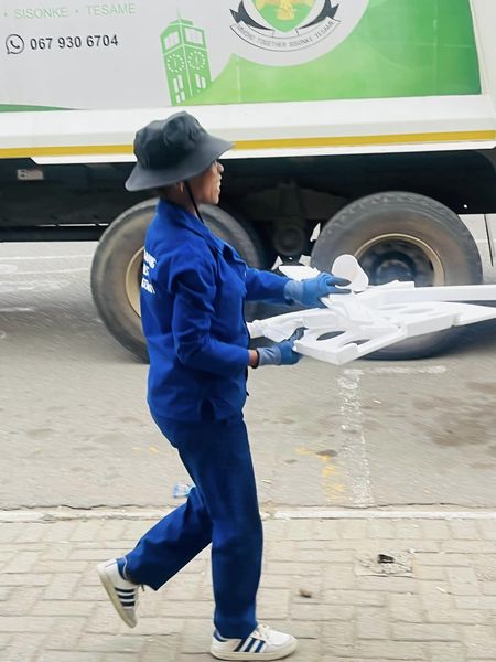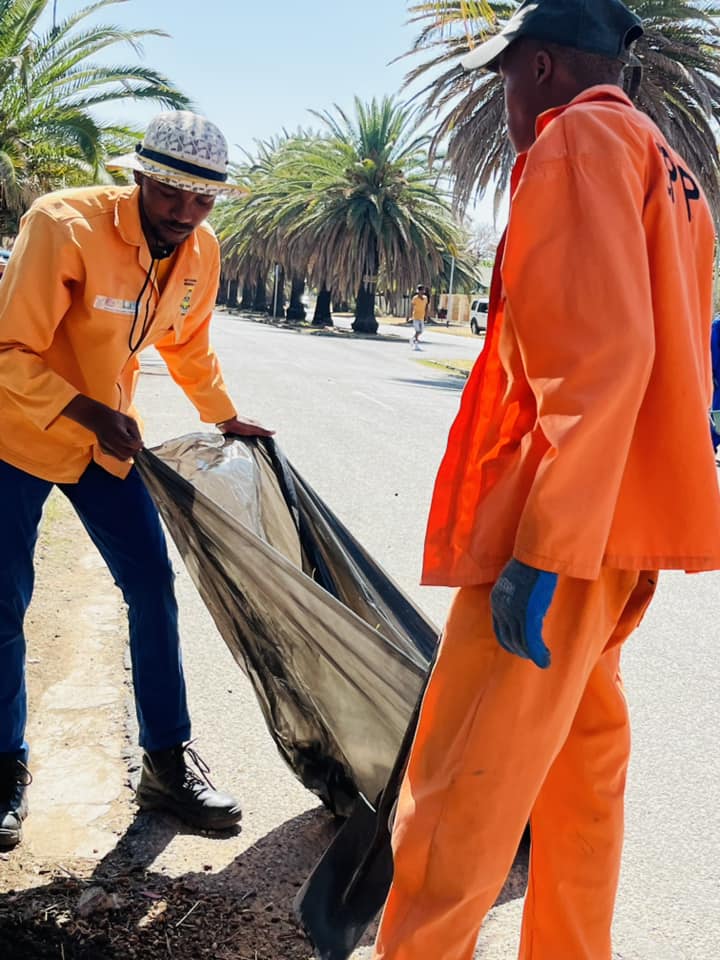 The Matjhabeng Local Municipality's Waste Management Team is actively working to clean the streets of Odendaalsrus town, collecting waste to ensure a healthier and more pleasant environment for all.