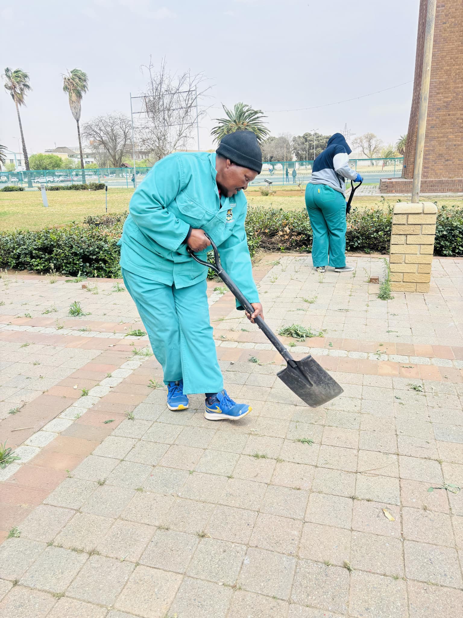 The dedicated Parks and Recreation team of Matjhabeng Local Municipality is hard at work maintaining the garden behind the municipal building, ensuring it's ready for the vibrant summer days ahead.