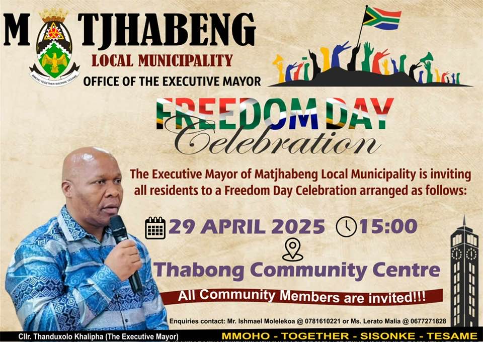 The Executive Mayor of Matjhabeng Local Municipality will tomorrow, 29 April 2025, lead the Freedom Day Celebration