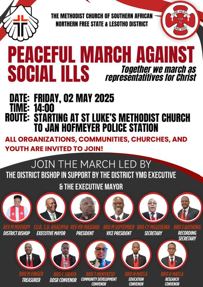 The Executive Mayor, Cllr. Thanduxolo Khalipha will tomorrow join the Methodist Church of Southern African Northern Free