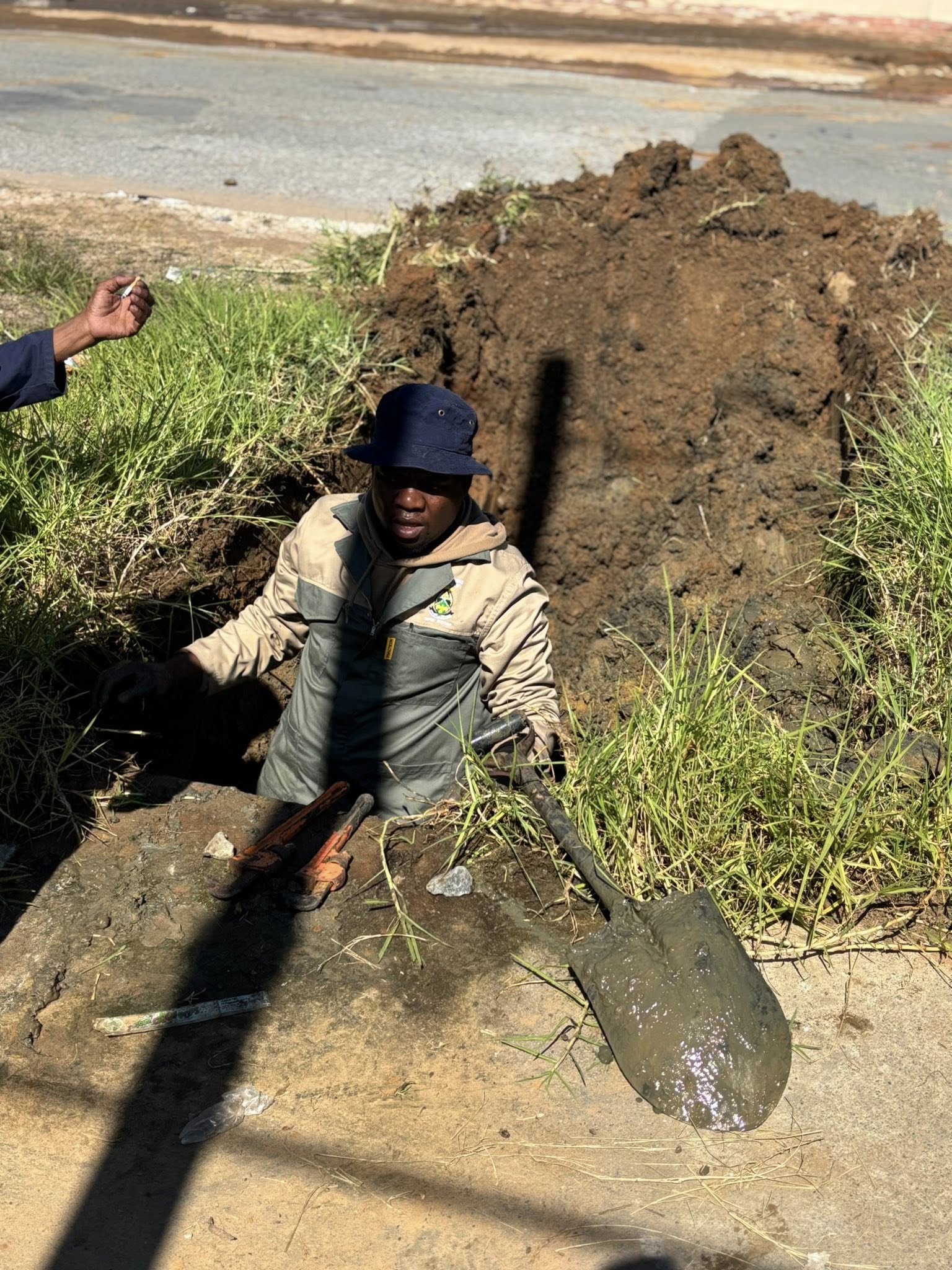 The Water and Sanitation Department is on the ground in Ward 31, Thabong, actively attending to water leaks along